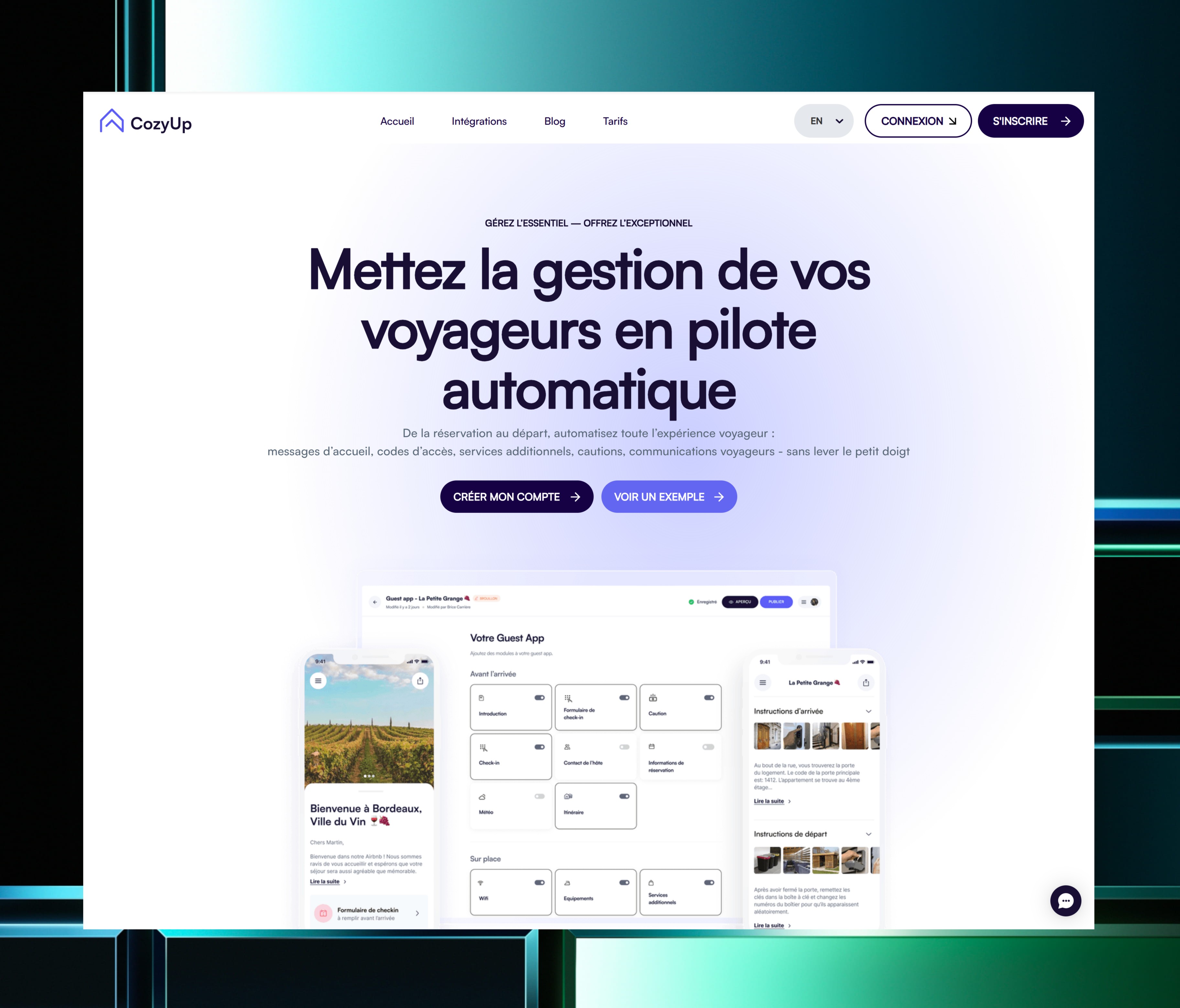 Le défi pour CozyUp était de créer une solution simple et intuitive pour les hôtes de location saisonnière, leur permettant de se démarquer de la concurrence et d'augmenter leurs revenus sans effort supplémentaire. Il fallait automatiser les tâches répétitives et offrir une expérience voyageur exceptionnelle.