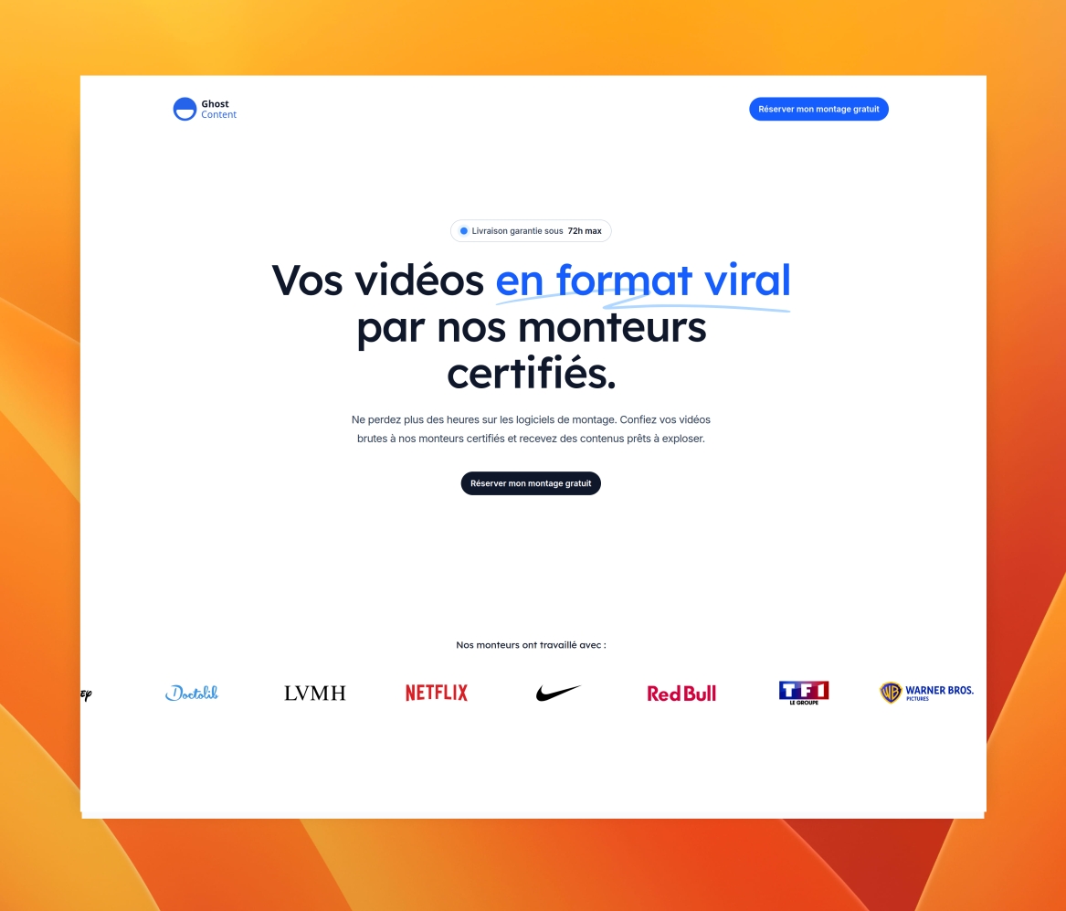 Les créateurs de contenu passent des heures sur le montage de leurs vidéos, un temps qu'ils pourraient consacrer à la création. L'objectif de GhostContent est de leur libérer ce temps en leur donnant accès à un réseau de monteurs professionnels.
